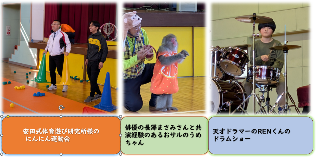 運動会から可愛いおさるのうめちゃんショー、そしてREN君の素晴らしいドラム演奏にと、一日に盛沢山な経験が出来、終わるころには心も体も大満足な一日となりました。